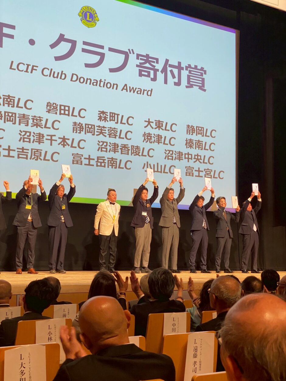式典は、感動的なアトラクションから厳かな表彰へと移りました。そして、我が「静岡青葉ライオンズクラブ」にとっても、非常に誇らしい瞬間が訪れました。大スクリーンに映し出された「LCIF・クラブ寄付賞」のリストの中に、我がクラブの名が大きく記されていたのです。