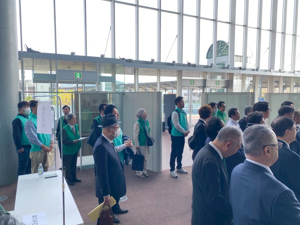 お車から降り立たれた副知事を、私たち交通部会のメンバーは誇り高きミントグリーンのベスト姿でおもてなしの心をもってお迎えいたしました。秒単位での正確な誘導が求められる場面でしたが、これまでのシミュレーションとチームワークが見事に結実した瞬間でした。副知事をお待たせすることなく、スムーズに式典会場へとご案内できたことは、私たち交通部会にとってこの日最大のミッションの一つを完遂したという、大きな自信に繋がりました。